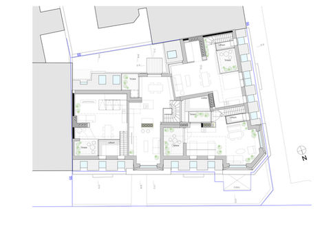 Um den Vorgaben einer optimalen Ausnutzung zu entsprechen und zwei Dachgeschosse zu realisieren, wurden die Wohnungen über zwei Geschosse zusammengefasst und so die Zwischendecke minimiert.